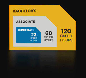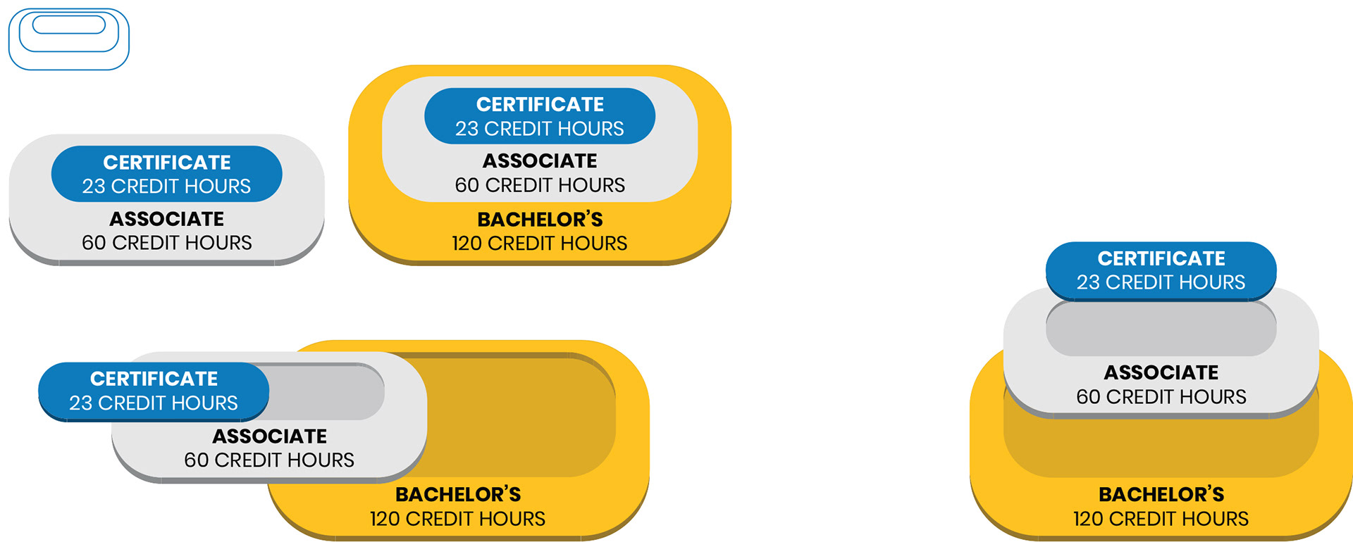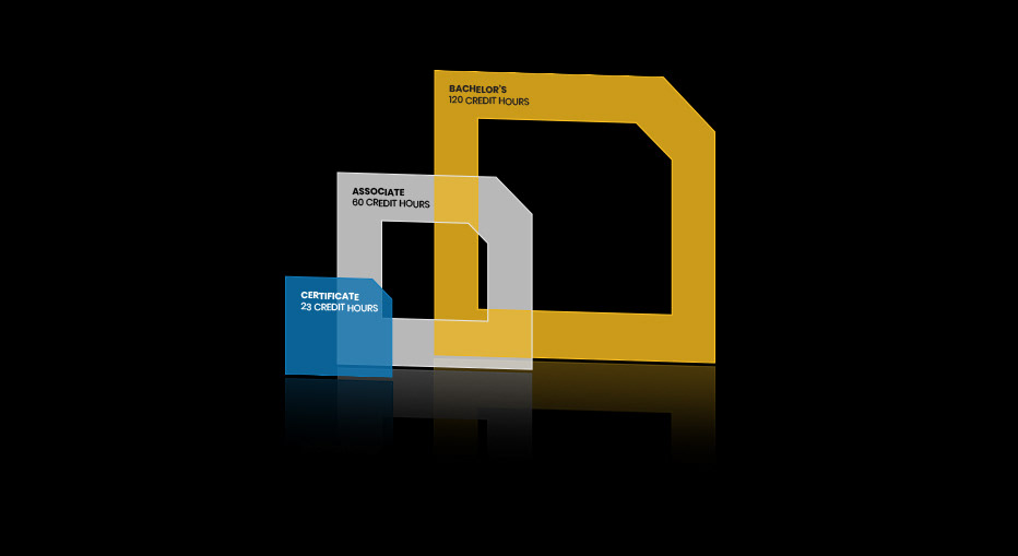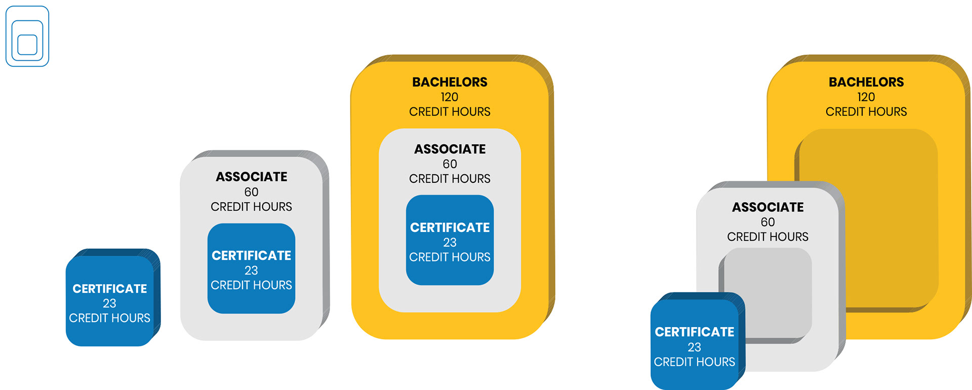 Infographic for embedded credentials, which allow those pursuing their bachelor's to earn their certificate and associate along the way. I developed the graphic, motion storyboards and provided art direction for the final animation.