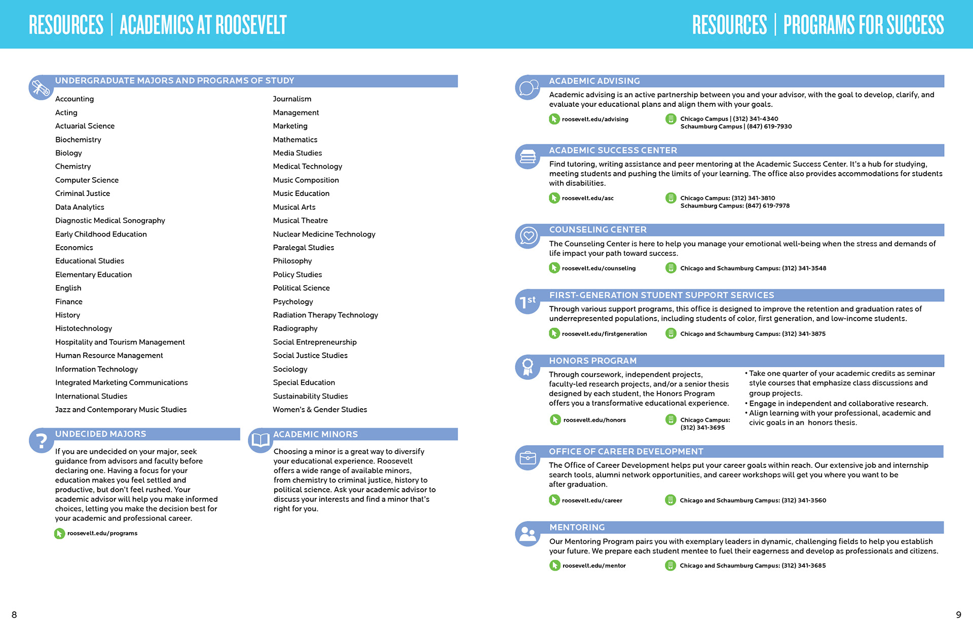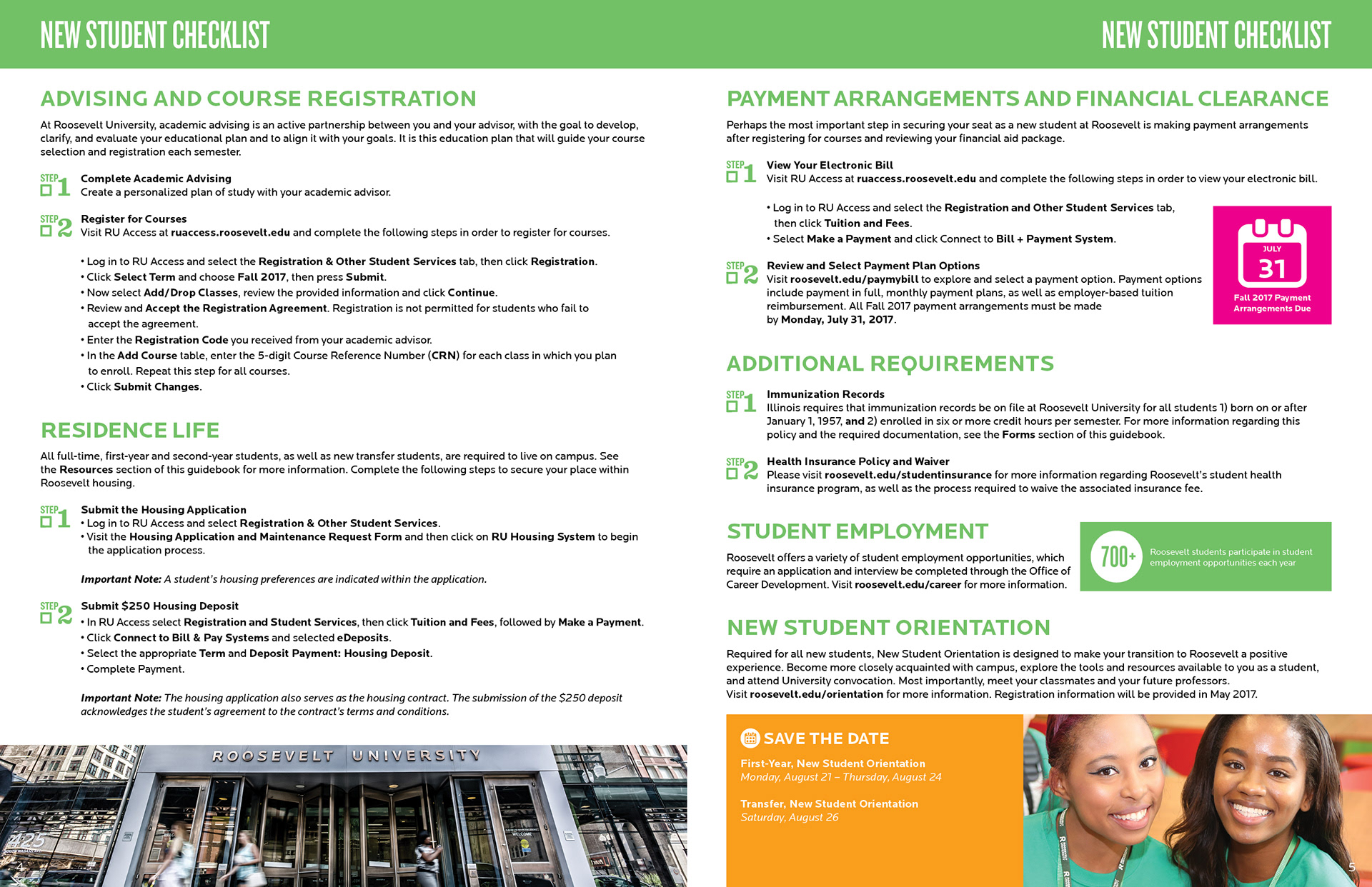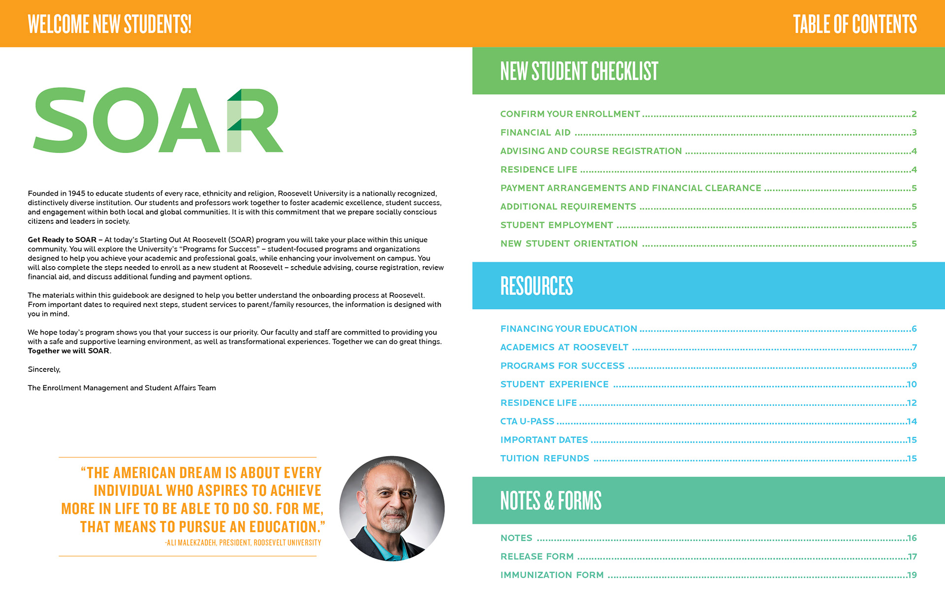 Informational booklet for new students Starting Out At Roosevelt (SOAR).
